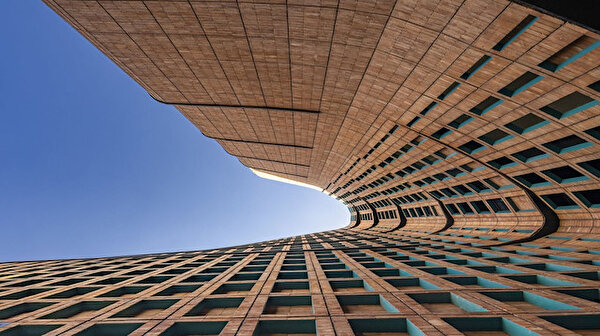 Tuğla ve torklu metal çerçevelerden oluşan dış gözenekli kabuk ile bütünleşmiş bir çift cidarlı cephe oluşturuluyor. Tuğla ve metal çerçevelerin kombinasyonu, cephede daha büyük açıklıklar sağlayan modüller oluşturuyor.