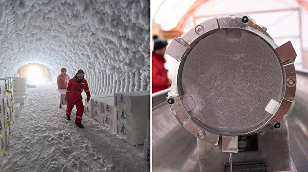 İngiltere'nin Cambridge kentindeki Britanya Antarktika Araştırması kuruluşunun muhafaza ettiği ve -23C'de saklanan tarihi ve bilimsel değeri olan buz silindiri görüntülendi. Buz çekirdeklerinin en alttaki bölümü 1,5 milyon yıllık zaman kapsülü niteliğinde olduğu saptanıyor.