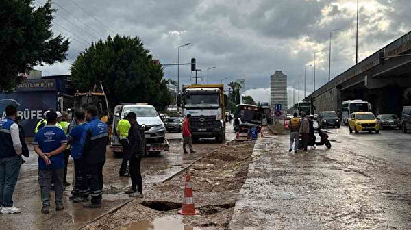 Antalya’nın Aksu ilçesinde yağmur nedeniyle alt yapı çalışmaları sonrası kapatılan çukurlarda çökme meydana geldi. Belediye otobüsü ve bazı araçlar çukura saplanırken, yol trafiğe kapatıldı.