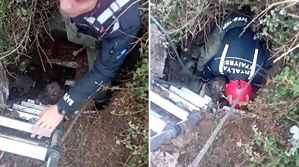 Mahsur kalan köpek, ekipler tarafından önce güvenli bir noktaya alındı, ardından ipli düzenek kullanılarak yukarı çıkarıldı. Korku dolu dakikaların ardından kurtarılan köpek, kendi hâlinde bölgeden uzaklaştı.