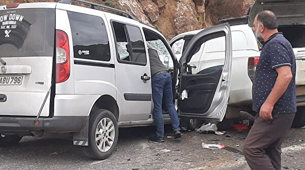 Kaza sonrası yoldan geçen Muhammet Y.’nin (42) kullandığı 08 ABJ 017 plakalı hafif ticari araç da duramayarak, diğer araçlara çarptı. Kazada sürücülerle, kamyonetteki yolcu Ozan A.(24) yaralandı.