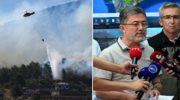 Bakan Yumaklı, Hatay'daki yangına dünden bu yana 8 uçak, 12 helikopter, 1000'in üzerinde orman teşkilatının arazözleri ve farklı kurumların araçlarıyla 2 bin 700'ün üzerinde personelle müdahale edildiğini söyledi.