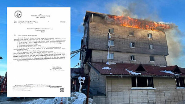 Bolu Belediyesi Başkanlığı İtfaiye Müdürlüğü'nün 2 Ocak 2025'te yanan otelle ilgili yaptığı çalışmanın raporu ortaya çıktı. İtfaiye raporunda, otelin restoran bölümünde inceleme yapıldığı, herhangi bir aksaklığa işaret etmediği görüldü.