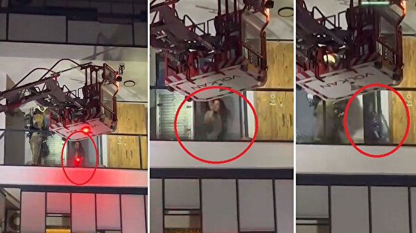 Kadının kapıyı açmaması üzerine itfaiye personeli, sepetli araç yardımıyla dairenin balkonuna çıkarak içeriye ulaşmaya çalıştı. Müdahale sırasında kadının eline geçirdiği damacanayı balkona çıkan itfaiyeciye fırlattığı görüldü.