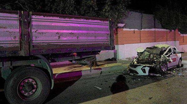 Büyükçekmece'de Karaağaç Mahallesi Yiğittürk Caddesi'nde bir otomobil, park halindeki tıra arkadan çarptı.
