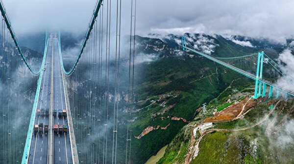Guizhou'nun dağlık kesimindeki Beipan Nehri'nin 625 metre üzerinde yükselen Huajiang Büyük Kanyon Köprüsü’nün, San Francisco'daki Golden Gate Köprüsü'nden yaklaşık dokuz kat daha yüksek olduğu kaydedildi.