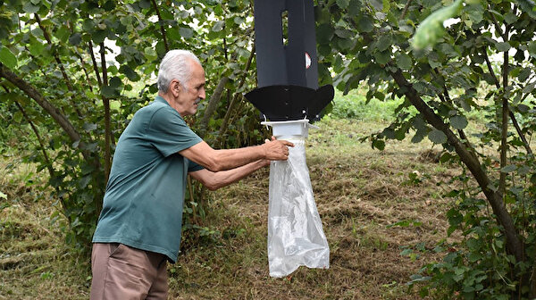 "Bu dengeyi de gözeterek, özellikle fiziksel ve biyolojik mücadelenin çok daha verimli olduğunu düşünüyoruz. Bizim toplam 65 bin hektarlık yani 650 bin dekarlık fındık alanımız var ama her tarafta kokarca yaygın değil. Özellikle sahil bandında 300 rakıma kadar olan yerlerde 40-50 tane feromon tuzağı doğaya bırakıyoruz."