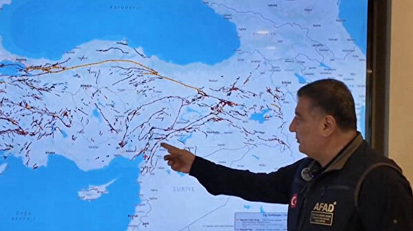 Afet ve Acil Durum Yönetimi Başkanlığı (AFAD), Türkiye Deprem Tehlike Haritası'nda 485 diri fay segmenti bulunduğunu ve açık sarıdan koyu kırmızıya doğru değişen renklerin ivmenin düşükten yükseğe doğru artışını ifade ettiğini bildirdi.