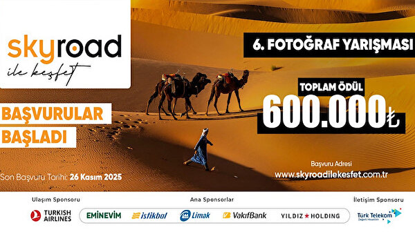 Seyahatten kültür-sanata, yemekten gündelik yaşama farklı coğrafyaların hikâyelerini takip eden Skyroad, altıncı kez düzenlediği yarışmasıyla gezmeyi, keşfetmeyi ve gördüklerini paylaşmaktan mutluluk duyan herkesi bir kez daha buluşturuyor. Toplamda 600.000 TL’ye ek olarak özel kategori vasıtasıyla 100.000 TL de hediye çeki verilecek Skyroad ile Keşfet Fotoğraf Yarışması’nın son başvuru tarihi 26 Kasım 2025 olarak belirlendi.