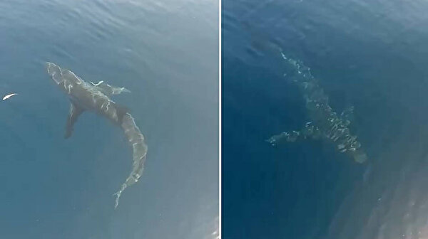 Edirne’nin Saros Körfezi’ne kıyısı bulunan Keşan ilçesine bağlı Erikli sahili açıklarında balıkçılar yüzeye çıkan yaklaşık 3 metre uzunluğunda köpekbalığını cep telefonuyla görüntüledi.