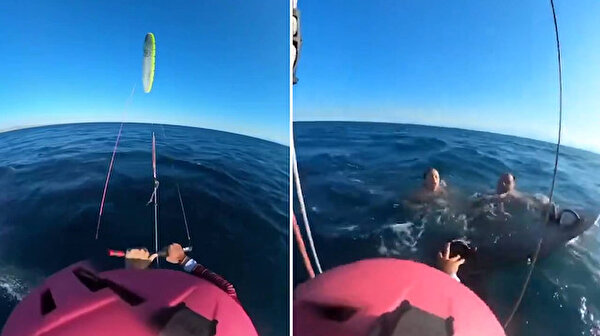 Çevredeki insanların yardım çığlıklarını duyan bir uçurtma sörfçüsü, vakit kaybetmeden harekete geçti. Profesyonel manevralarla akıntıya doğru yönelen sörfçü, önce küçük kızı ardından babayı güvenli bir şekilde kıyıya çekmeyi başardı.