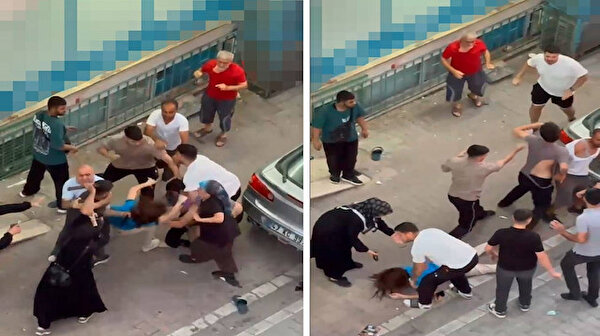 Dakikalarca yerde hareketsiz şekilde yatan kadın sağlık ekiplerince hastaneye kaldırılırken, iki tarafta karakola giderek birbirlerinden şikayetçi oldu. Kadının aldığı darbeler sonucunda bayıldığı anlar ise saniye saniye kameraya yansıdı.