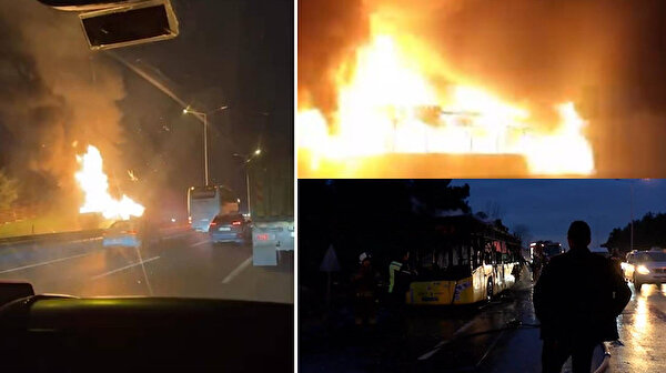 Kemerburgaz yolunda korkutan yangın: İETT otobüsü alev alev yandı!