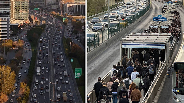 İstanbul’da ara tatil sonrası okulların yeniden açılmasıyla birlikte trafik yoğunluğu yüzde 80’e kadar ulaştı. Trafiğin merkezi olduğu noktalardaki yoğunluk havadan görüntülendi.