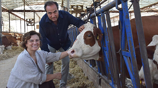 İzmir'de yaşayan veteriner hekim çift, emekli olduktan sonra Torbalı'da 300 başlık çiftlik kurdular. Yeni doğan buzağılarına ise eş, dost, akraba ve tanıdıklarının ismini veriyor.