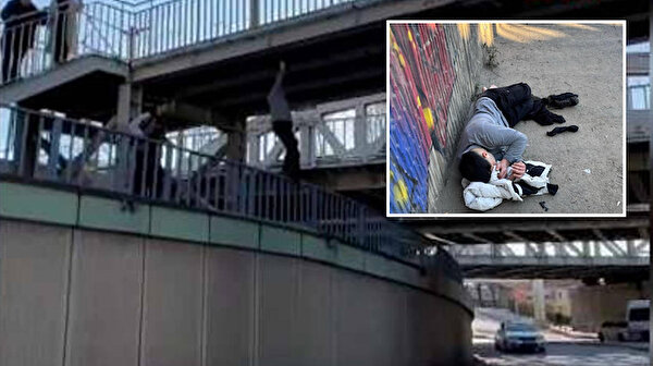 İçerik sevdası pahalıya patladı: Üst geçitten düşüp bacaklarını kırdı