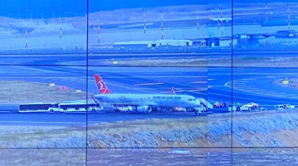 İstanbul Havalimanı'nda THY uçağı pistin ortasında kaldı