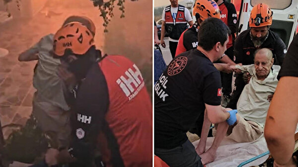 Tekerlekli sandalyedeki yaşlı adam ekipler tarafından kurtarıldı. Yine evinde kedisi ile birlikte mahsur kaldığı öğrenilen bir vatandaş da ekipler tarafından kurtarırken sonrasında duygu dolu anlar yaşandı. Yangını kontrol altına alma çalışmaları sürüyor.