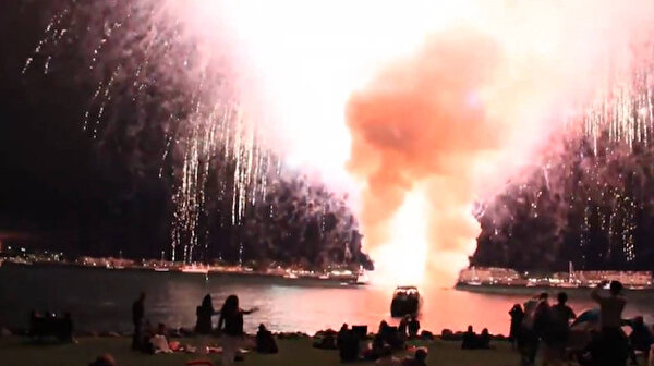 Alevlere teslim olan 2 platformda bulunan 5 işçinin denize atladıktan sonra kurtarıldığı, 1 işçinin bu sırada hafif yaralandığı açıklandı. Şans eseri can kaybı yaşanmazken, etkinlik organizatörleri havai fişek fırlatma sisteminin kontrolden çıktığını doğruladı.