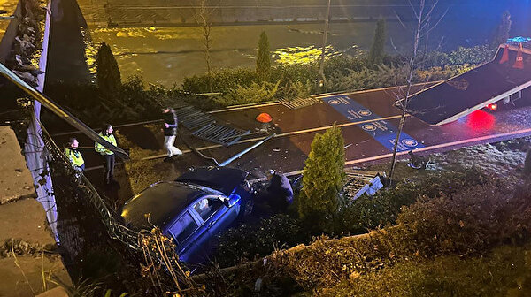 Anadolu Caddesi üzerinde seyreden ve sürücüsünün kimliği öğrenilemeyen 34 HDB 887 plakalı otomobil, dere kenarındaki yürüyüş yoluna düştü.