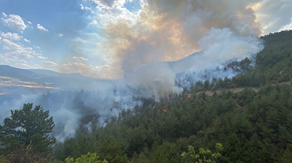 Köylülerin ihbarı üzerine bölgeye Orman Bölge Müdürlüğü’ne bağlı arazözler, itfaiye ve yangın söndürme helikopteri sevk edildi. Ekipler, alevlere müdahale ediyor.