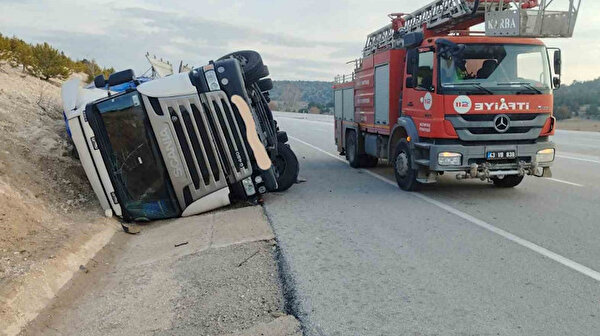 Kütahya’nın Altıntaş ilçesinde kontrolden çıkan tırın devrilmesi sonucu meydana gelen kazada sürücü yaralandı.