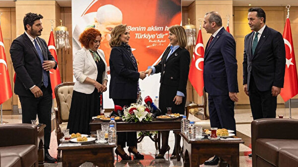MHP’nin kabul heyeti Genel Başkan Yardımcısı Zühal Topcu, Siyaset ve Liderlik Okulu Koordinatörü MYK Üyesi Turan Şahin ve MYK Üyesi Özmen Alp Giray Erdemir’den oluştu.