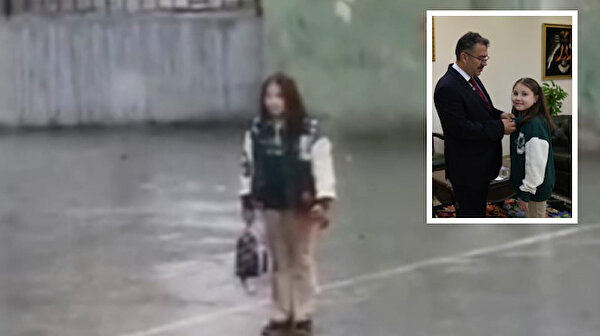 Iğdır'da öğrenim gördüğü ilkokulun bahçesine girdikten sonra hoparlörden İstiklal Marşı'nın okunduğunu duyunca yağmur altında saygı duruşuna geçen Zeynep Ece Doğan, Vali Ercan Turan tarafından altın ile ödüllendirdi.