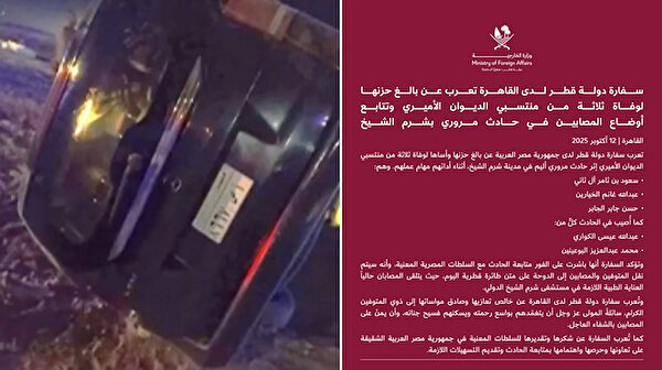 Katar’ın Kahire Büyükelçiliğinden yapılan yazılı açıklamada, Suud bin Sâmir Al Sâni, Abdullah Ganim el-Hayyarin ve Hasan Cabir el-Cabir isimli diplomatların, görevde bulundukları Şarm eş-Şeyh'te yaşanan trafik kazasında yaşamlarını yitirdiği belirtildi.