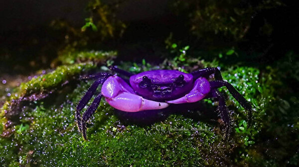 'Mor prenses' göz alıcı rengiyle hayran bıraktı: Tayland'da nadir yengeç türü görüldü