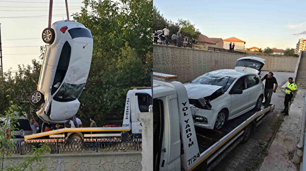 Otomobil, metrelerce yükseklikten yere çakıldı: Bir kişi yaralandı