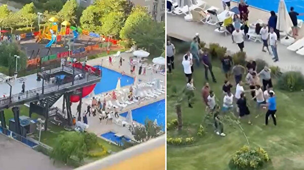 Havuz başında tekme yumruklar havada uçuştu. Kavgaya sitede oturan diğer vatandaşlarda dahil oldu. Taraflar birbirlerine havuz başında şezlongları fırlattı.