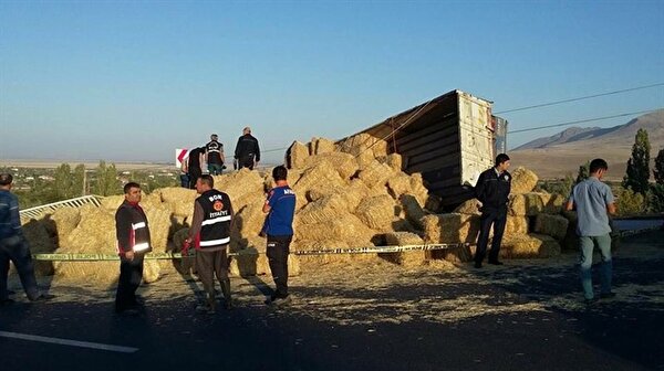 Niğde’de kontrolden çıkan saman yüklü kamyonun devrildiği kazada 1 kişi hayatını kaybetti, 2 kişi yaralandı.