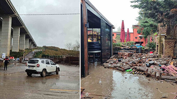 Sarıyer Kilyos’ta yoğun sağanak yağış, dere taşmasına yol açtı. Kilyos Tünel şantiyesindeki yol çökmesi sonucu bir araç dereye düştü, taşkın suları ise bölgedeki restorana doldu. İş yeri kullanılamaz hale gelirken, ekipler kısa sürede müdahale etti.