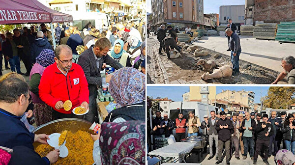 Cumhuriyet Meydanı ve okullarda yapılan organizasyon kapsamında vatandaşlara pilav ikramı yapılırken, kurbanlar kesildi ve hatimler okundu.
