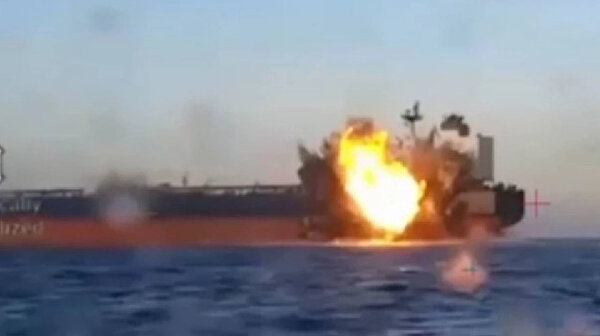 Dron kamerasının kaydettiği görüntülerde geminin isabet almasıyla birlikte alevlerin yükseldiği ve yoğun dumanın gökyüzünü kapladığı görülüyor.