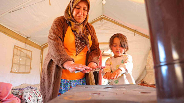 Yayla havasının etkili olduğu Ahır Dağı’nda, gün içerisinde 30 dereceyi aşan sıcaklıklar geceleri 10 derecenin altına düşebiliyor. Bu nedenle çadırda yaşayan aile, bazı günler öğle sıcağında gölge ararken, gece ise soba başında ısınıyor.