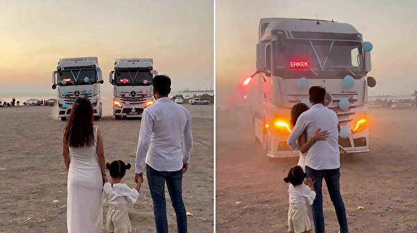 TIR şoförü babaya ilginç cinsiyet öğrenme partisi: Sosyal medyada eleştirilere maruz kaldılar