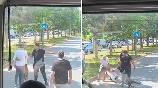 Kavga anı çevredeki bir vatandaş tarafından cep telefonu kamerasıyla görüntülendi.