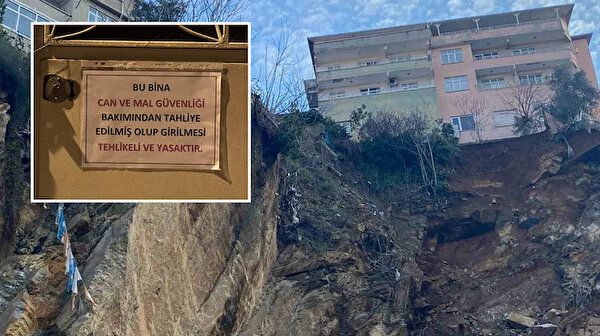Üsküdar'da iki binanın bahçesinde meydana gelen toprak kayması nedeniyle 9 daire ve 3 iş yeri tahliye edilerek mühürlendi.