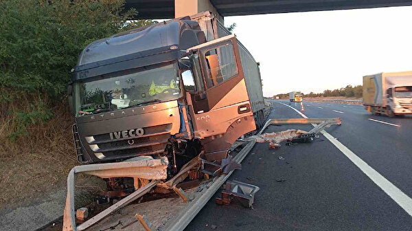Edirne-İstanbul TEM Otoyolu'nda sabah saatlerinde meydana gelen kazada, Bulgaristan plakalı bir tır sürücüsünün uykusuzluk nedeniyle direksiyon hâkimiyetini kaybetmesi sonucu kontrolden çıkarak bariyerlere adeta ok gibi saplandı. Yaklaşık 50 metre bariyeri biçen tır, köprü ayağına çarparak durabildi. Ağır yaralanan sürücü hastaneye kaldırılırken, olay yerine jandarma ve sağlık ekipleri sevk edildi. Kazayla ilgili inceleme başlatıldı.