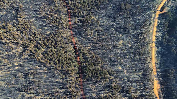 Havadan çekilen görüntülerde, yangının etkili olduğu bölgelerde yeşil ormanlık alanların yerini siyah kül örtüsünün aldığı görüldü. Alevlerin etkisiyle geniş bir alanın zarar gördüğü yangın sonrası geriye acı bir manzara kaldı.