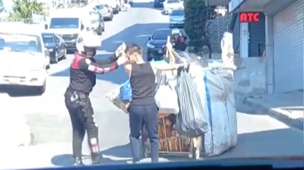 Yokuştan inemeyen kağıt toplayıcısının yardımına yunus polisi koştu
