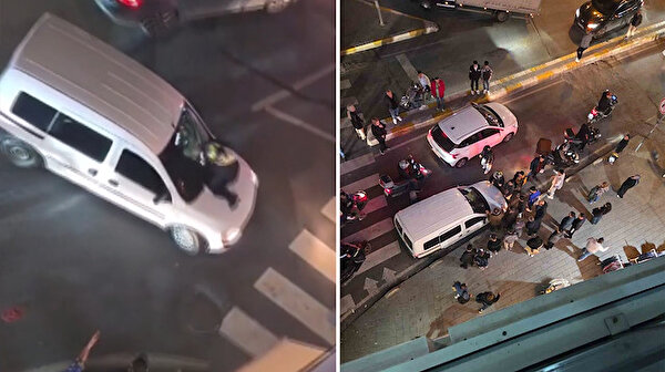 Kadın motorcuyu kaputunda metrelerce sürükledi: Trafik kavgası saniye saniye kameralarda
