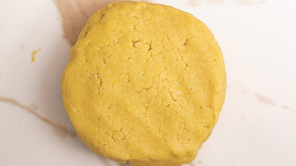 Adım 3: Yumurta sarısını ilave edin. Robotu hamur toparlanana kadar kesik kesik çekin. Tezgaha döküp hamuru bir araya getirin. Streç film ile kapatıp 30 dakika buzdolabında dinlendirin.