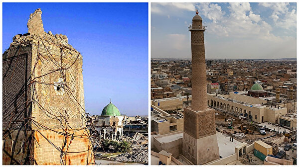 Minare ve cami, Birleşmiş Milletler Kültür Mirası Örgütü UNESCO'nun beş yıldır bölgedeki birçok yeri yeniden canlandırmak için yaptığı çalışmalarla restore edilen Musul'daki en son simge yapılar oldu.