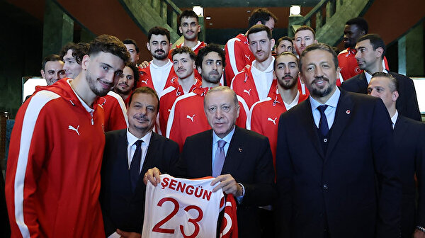 Başkan Recep Tayyip Erdoğan, 2025 Avrupa Basketbol Şampiyonası'nda gümüş madalya kazanan A Milli Erkek Basketbol Takımını kabul etti.
