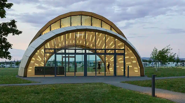 Organik formlu kabuk çatısı ile dikkat çeken tasarım: Forschungsbau Biomimetic Shell in Freiburg