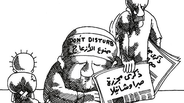 Beyrut’ta Filistinli yazarlardan (Allah rahmet eylesin) Hanna Mukbel, Reşad Ebu Şaver ile bir araya geldim. Hanna ve Reşad, el-Ma’rake adında bir dergi çıkartıyorlardı. Ben de artık hem es-Sefir hem de el-Ma’rake’de çizmeye başladım. (Dört taraftan, havadan ve bomba yüklü arabalarla) Altı cihetten bombardıman altında kalan bir insanın neler yapabileceğini merak ediyordum. Filistinlilerin de dediği gibi: “Burada ölüm büyük bir gereksinimdir.” Yurttaşlarımız ihmalkârlık ve acziyet hissedip ölmeyi temenni ediyor.