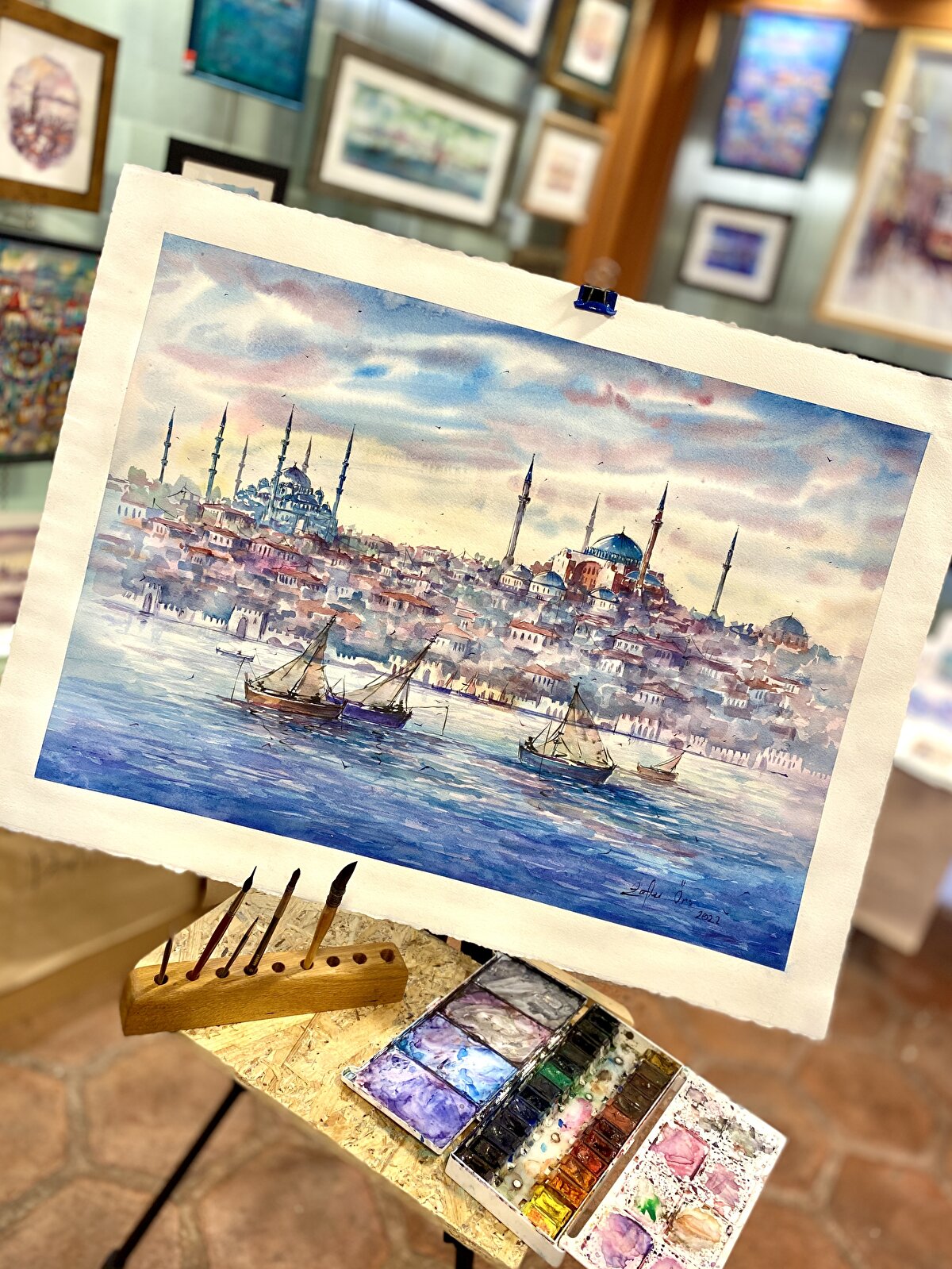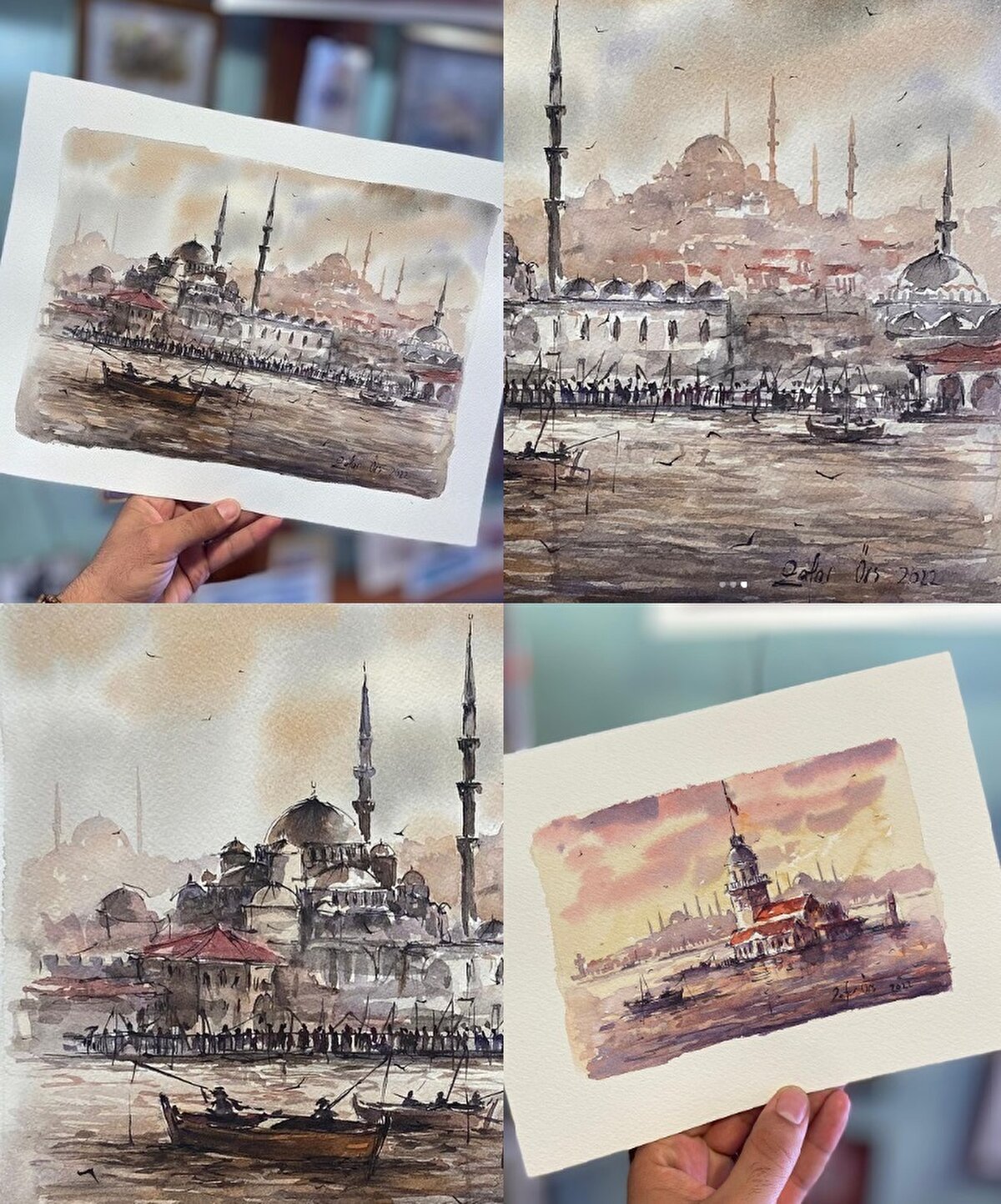 Sanatçı eserlerinde yoğunluklu olarak İstanbul'un sembol niteliğindeki manzaralarını ve at figürlerini suluboya tekniği ile çalışıyor. Eserler, renk değerleri ve fırça hareketleri bakımından sanatçının kendine has üslubunu yansıtıyor. Ressam Zafer Örs'ün eserlerini, 15 Eylül'e kadar Yeni Camii Hünkâr Kasrı sanat atölyelerinde görmek mümkün. Sanatçı, bu tarihten sonra çalışmalarına ve suluboya derslerine Ressam Cemal Toy'un resim atölyesinde devam edecek. Fotoğraflar için sanatçı Zafer Örs'e teşekkürler.